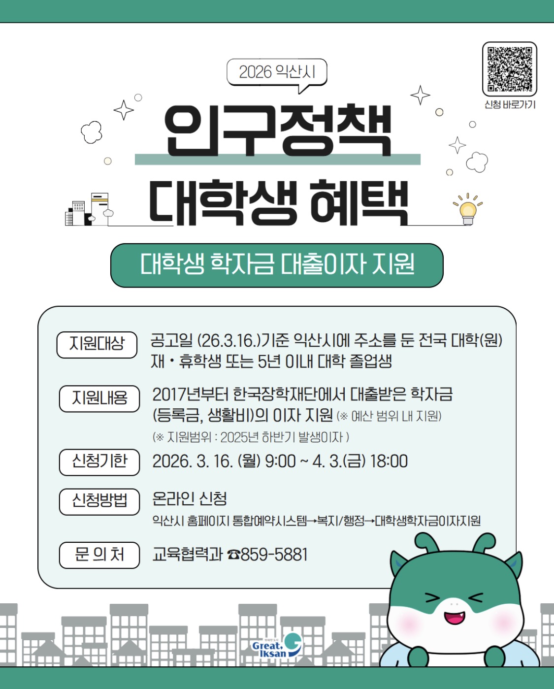2026학년 1학기 학자금대출 신청 5일부터.. ‘5월20일까지’농촌 출신 학자금대출, 올해 대학원생까지 확대… 주말 신청 가능, 2월 27일까지"경기도는 나이 제한 없어요" 학자금대출 신용회복 지원, 연체자 모집전북특별자치도, 2026년 상반기 학자금 대출 이자 지원사업 추진미국 PSLF 변경, 88,000명 학자금 대출 부담 증가허훈 서울시의원, 서울 대학생들의 안정적 학자금 대출 이자 지원 기반 마련한다