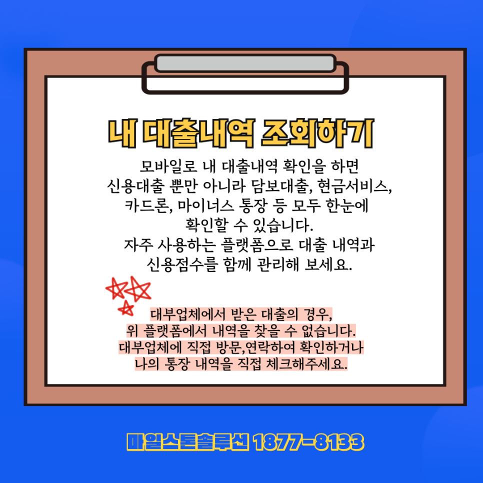 핀다, '나의 대출관리' 서비스 개편…"상환 계획 수립 지원"카카오페이, ‘시중은행·카드 사용 내역 통합조회’ 출시토스 "학자금 대출 조회·상환 관리 한번에"토스 "학자금 대출 조회·상환관리 한눈에"하나생명, 보험 현황을 한눈에 보는 `원큐라이프 체크` 서비스 오픈[금융꿀팁]"1년치 은행 거래내역, 보고서 하나면 확인 가능"